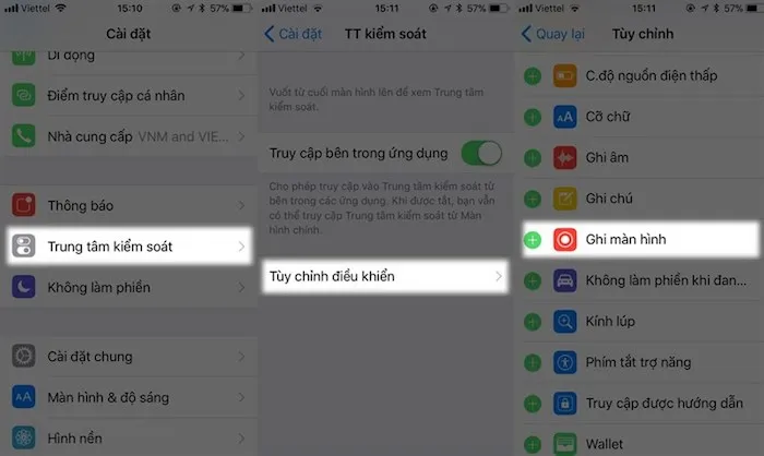 Để bắt đầu phát màn hình, người dùng iPhone cần thiết lập tính năng Ghi màn hình (Screen Recording) trong Trung tâm điều khiển. Việc này được thực hiện trong Cài đặt -> Trung tâm điều khiển -> Tùy chỉnh điều khiển -> Ghi màn hình.