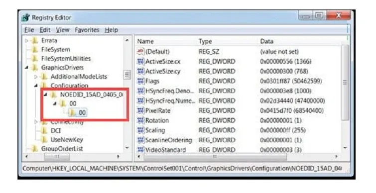 HKEY_LOCAL_MACHINE > SYSTEM > ControlSet001 > Control > GraphicsDrivers > Configuration