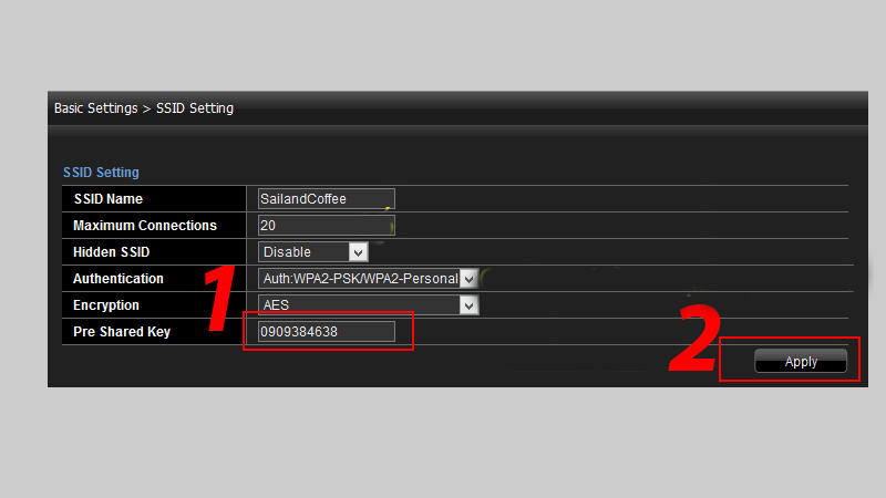 Cuối cùng, nhấn nút Apply để lưu lại tất cả các thay đổi. Hệ thống sẽ áp dụng mật khẩu mới cho mạng WiFi của bạn. Hãy đảm bảo rằng bạn đã ghi nhớ mật khẩu mới này.
