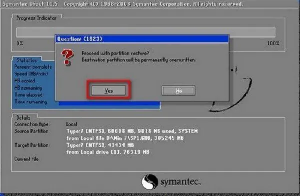 Bạn nhấn Yes để xác nhận đồng ý thực hiện quá trình ghost.