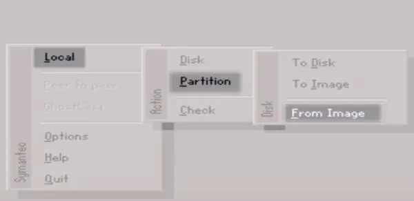 Tiếp tục chọn Local -> Partition -> From Image. Đây là lệnh để phục hồi một phân vùng từ file ảnh (.GHO).