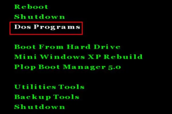 Bạn cần chọn mục Dos Program để truy cập các tiện ích DOS. Mục này chứa Norton Ghost mà chúng ta cần.