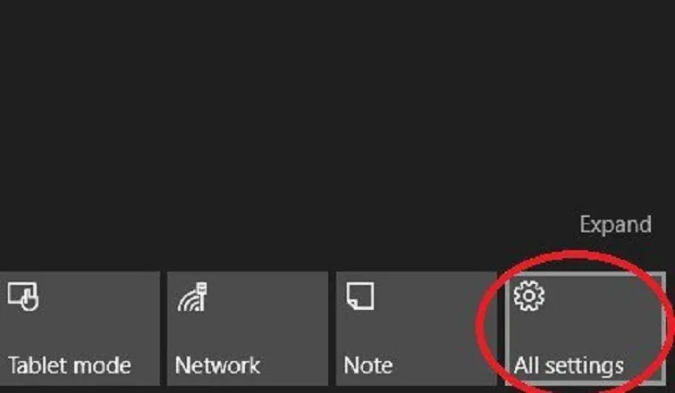 Bước 2: Trong cửa sổ Action Center vừa mở, chọn “All settings” ở góc phải. Lựa chọn này sẽ đưa bạn đến cửa sổ Settings chính của Windows.