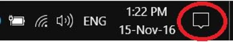 Bước 1: Nhấn vào biểu tượng thông báo hình chuông ở góc dưới bên phải màn hình. Thao tác này sẽ mở Action Center, nơi tập hợp tất cả các thông báo và cài đặt nhanh.