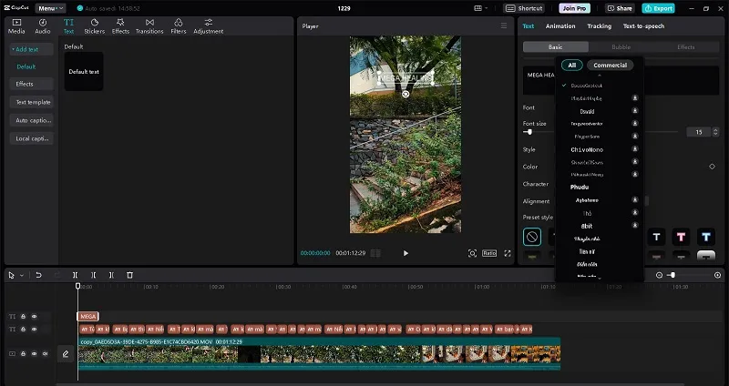 Alt mới: Sử dụng font chữ mới cài đặt trong giao diện ứng dụng chỉnh sửa video như CapCut