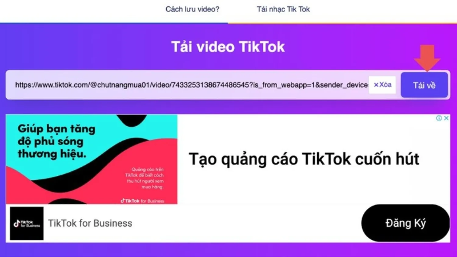 Nhấn “Tải về” để bắt đầu tải video TikTok -