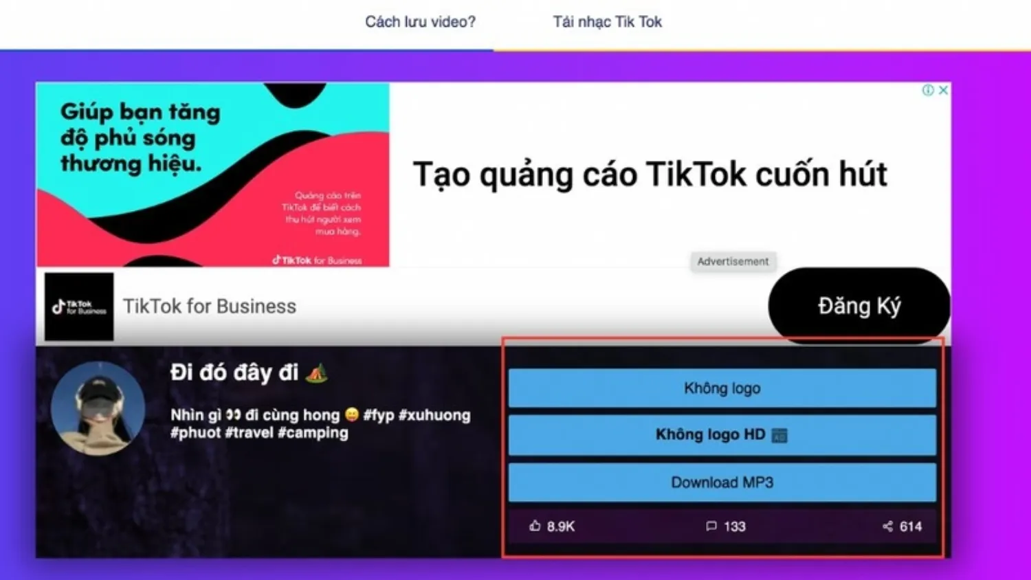 Chọn “Không logo” hoặc “Download MP3” để tải âm thanh gốc TikTok