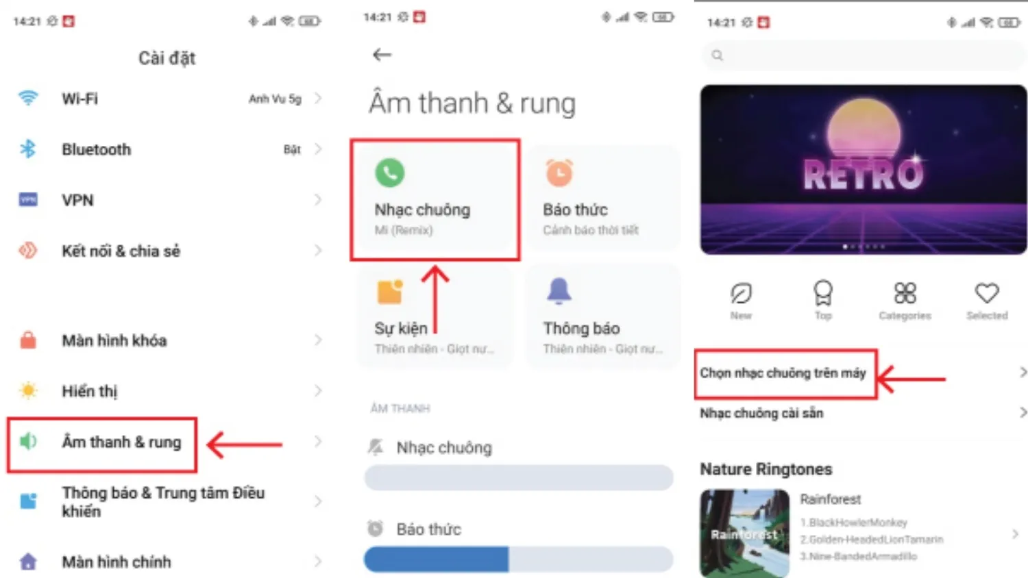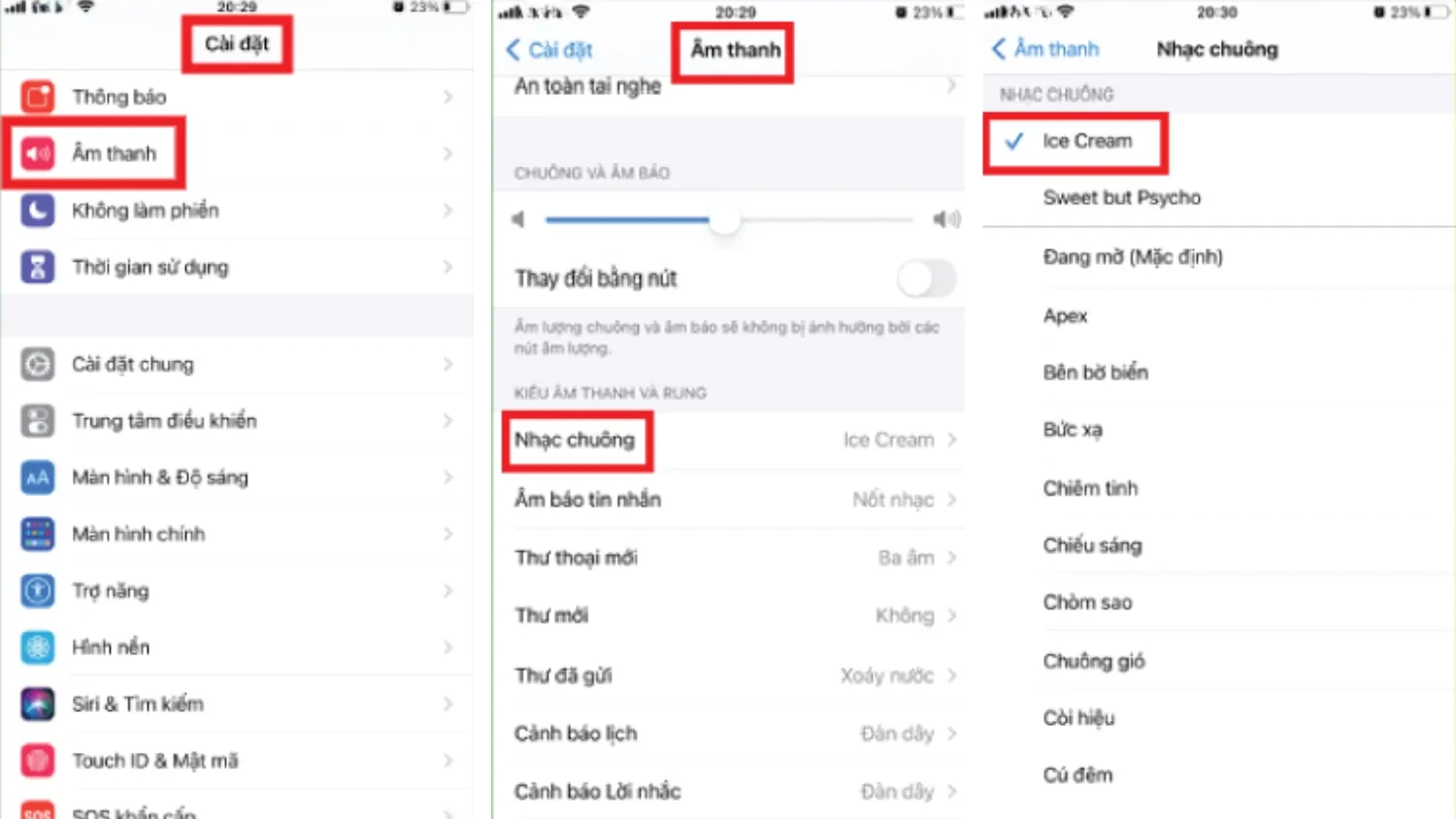 Âm thanh > Nhạc chuông” để chọn bài vừa tạo” width=”1500″ height=”844″ />Truy cập “Cài đặt > Âm thanh > Nhạc chuông” để chọn bài vừa tạo -