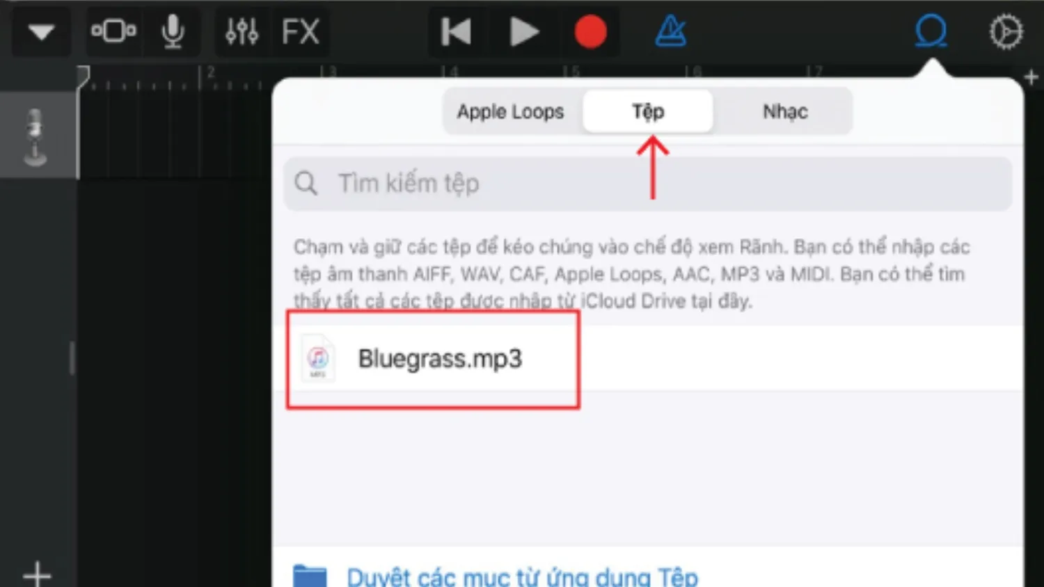 Bước 1: Chuẩn bị tệp nguồn. Tải ứng dụng GarageBand và đảm bảo tệp MP3 đã được lưu vào iPhone của bạn.