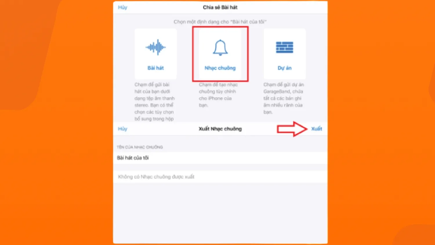 Chọn định dạng “Nhạc chuông”, nhấn “Xuất” để hoàn tất cài đặt.